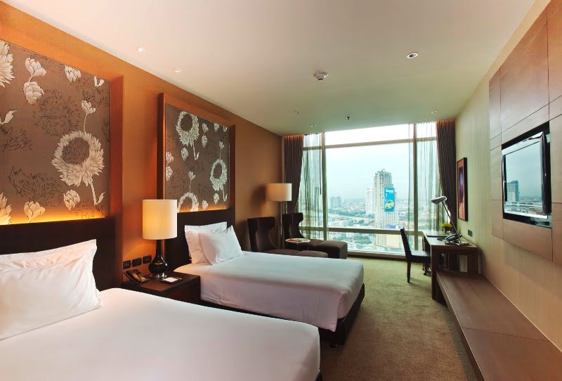 Tutte le 390 camere, lussuosamente arredate, sono decorate con toni tenui e dispongono dei più moderni confort e una vista mozzafiato sull’imponente skyline di Bangkok. Le camere dispongono di aria condizionata, telefono, TV, cassetta di sicurezza, minibar, connessione internet WIFI gratuita, asciugacapelli.